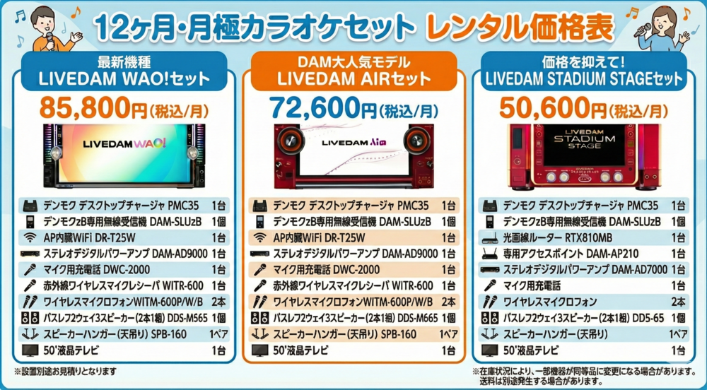カラオケ流通センターでは短期レンタル(2泊3日)の他に
